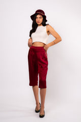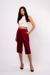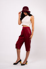 Brangio Luxe Burgundy Satin Cropped Trousers