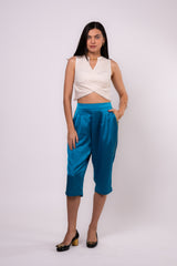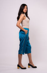 Make a bold fashion statement with these Luxe Sapphire Chain-Embellished Satin Culottes. Designed for the modern woman who loves elegance with an edge, these culottes feature a rich sapphire blue hue and gold-tone chain embellishments for an elevated touch.