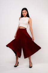 Brangio Chic Burgundy Pleated Wide-Leg Pants