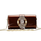 * Detachable chain strap to transform wallet into crossbody clutch