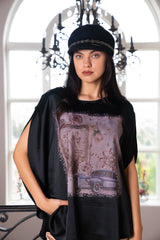 Elevate your wardrobe with this stunning poncho, featuring a vintage-inspired print that blends classic elegance with modern glamour.