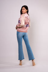 Step into elegance with this stunning satin bomber jacket, designed for the fashion-forward woman who loves a touch of Parisian glamour.