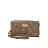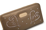 Add a touch of glamour to your everyday essentials with this stylish and sophisticated wallet, designed with dazzling embellishments and a heartfelt motif.