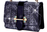 Millionaire Goddess Double Layer Crystal Engraved Dome Satchel - Brangio Italy Collections