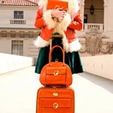 Textured and timeless, our suitcase is constructed in a rich shine leather and finished with sleek gold-tone hardware. Rely on this piece for weekend getaways and travel abroad for years to come. Your ticket to first-class fabulous, this polished carry-on is crafted from durable double-coated gloss leather. 360-degree spinning wheels and plenty of compartments keep this stylish suitcase in line with the modern day frequent flier.