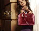 Misty U.S.A. Handbags are made from genuine leather with gold plated accessories. The bag’s perfect convenient size, metallic gloss face, and multi pocket interior make it modern, desirable and trendy. It's leather bag handle enables a hand or elbow carry while the removable and adjustable leather strap a shoulder or cross-body wear.