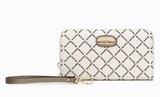 - Interior details: 2 dividers, 8 card pockets, checkbook pockets, coin pocket.