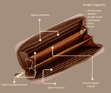 - Spacious interior with multiple compartments for cash, cards, and coins