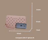 Designed for those who love chic and functional accessories, this heart-studded wristlet wallet adds a touch of glamour to your everyday essentials.