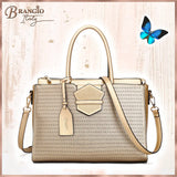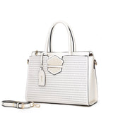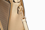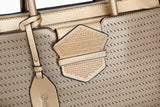 Brangio Italy Gold Perforated Handbag – Elegant Vegan Leather Satchel with Geometric Accent & Removable Strap