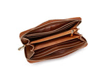- Interior details: triple middle dividers, 8 card slits, checkbook pockets, coin pocket.