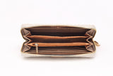 - Interior details: triple middle dividers, 8 card slits, checkbook pockets, coin pocket.