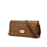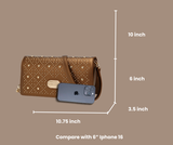 Clutch Size: L:10.75” H: 6” W: 3.5” + Adjustable Shoulder Strap