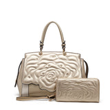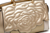 Rosette 3d Crystal Vegan Leather Metallic Handbag [RA8523]