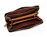 - Interior details: triple middle dividers, 8 card slits, checkbook pockets, coin pocket.